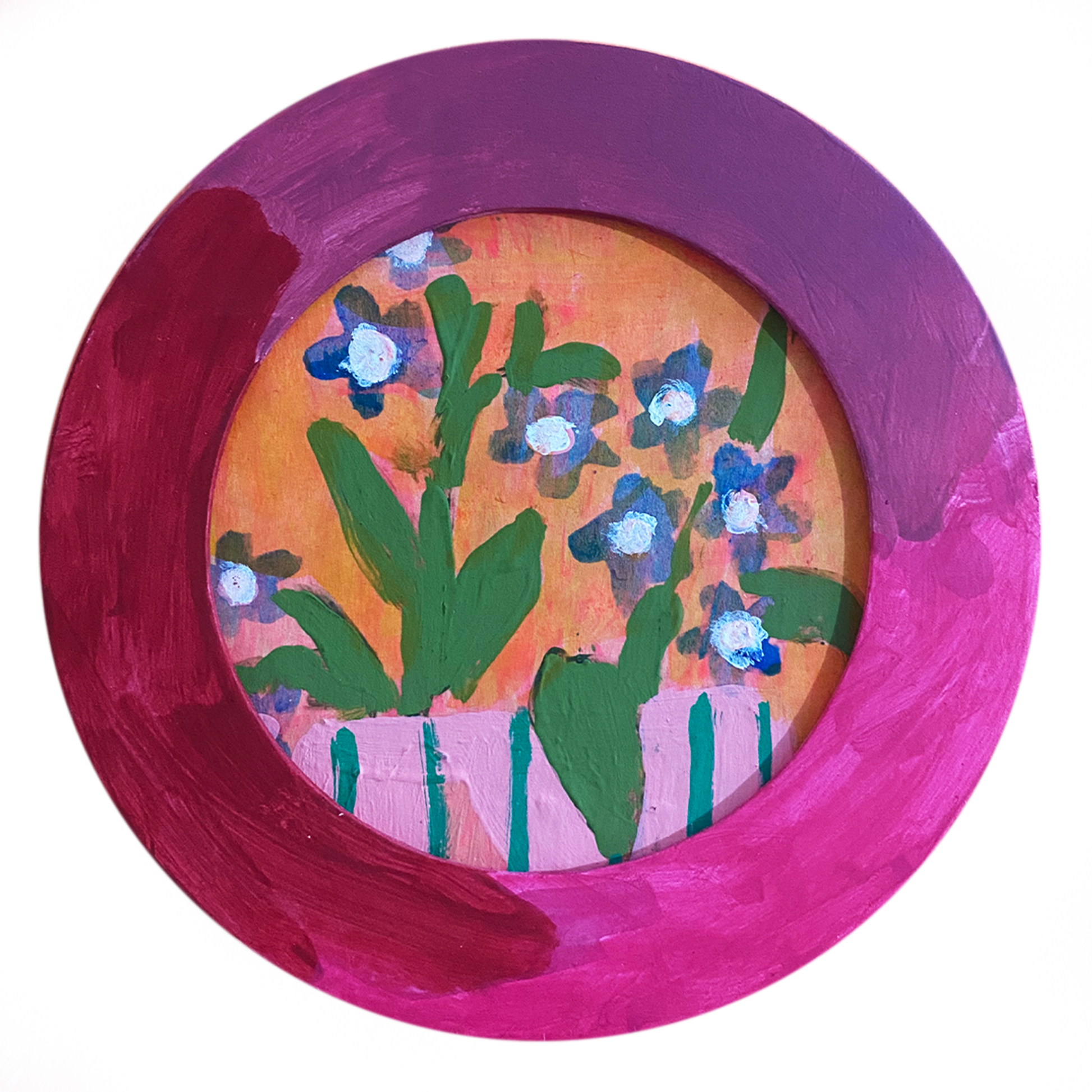 The ideas for her playful and intuitive work are often sparked from a trip to a vintage store or a walk in nature. She uses Acrylic paint to create her layered works, embracing wobbly lines and the perfectly imperfect. Her earliest memories of being creative are with her nan, Bev - you will notice that her works are signed CBK, the B of course standing for Bev.