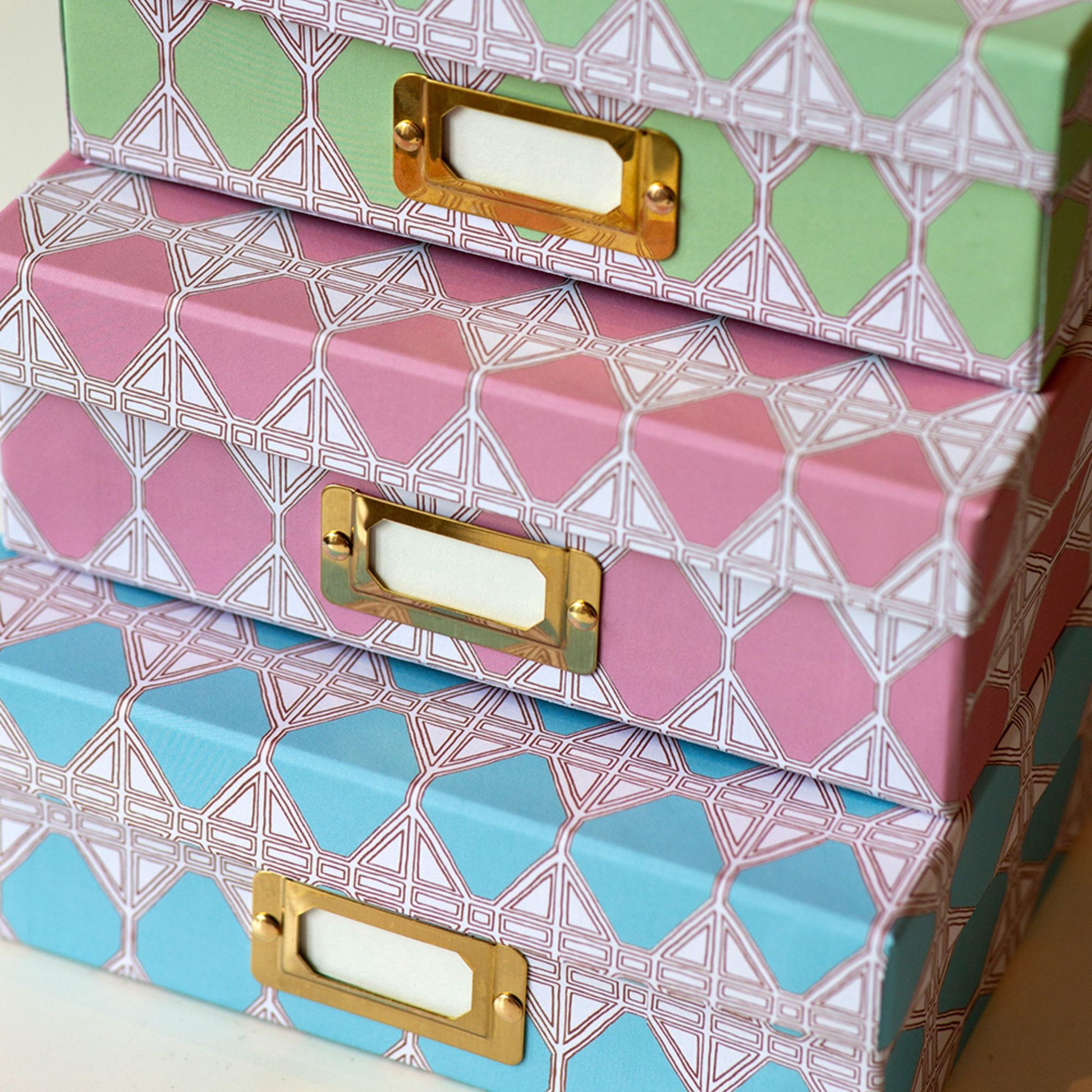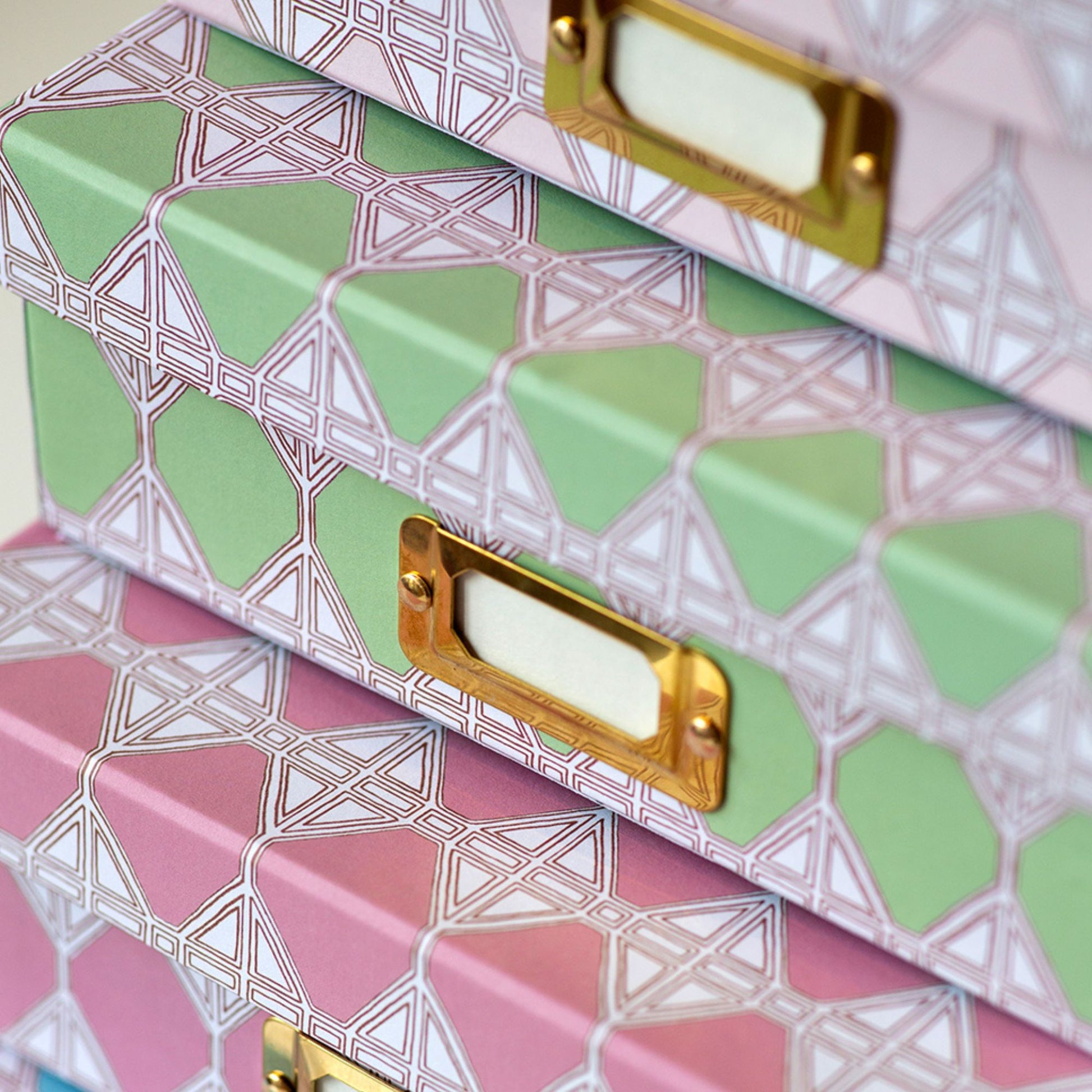 The Lidded Portfolio Box has a brass card frame at the front and fits A4 papers and objects.