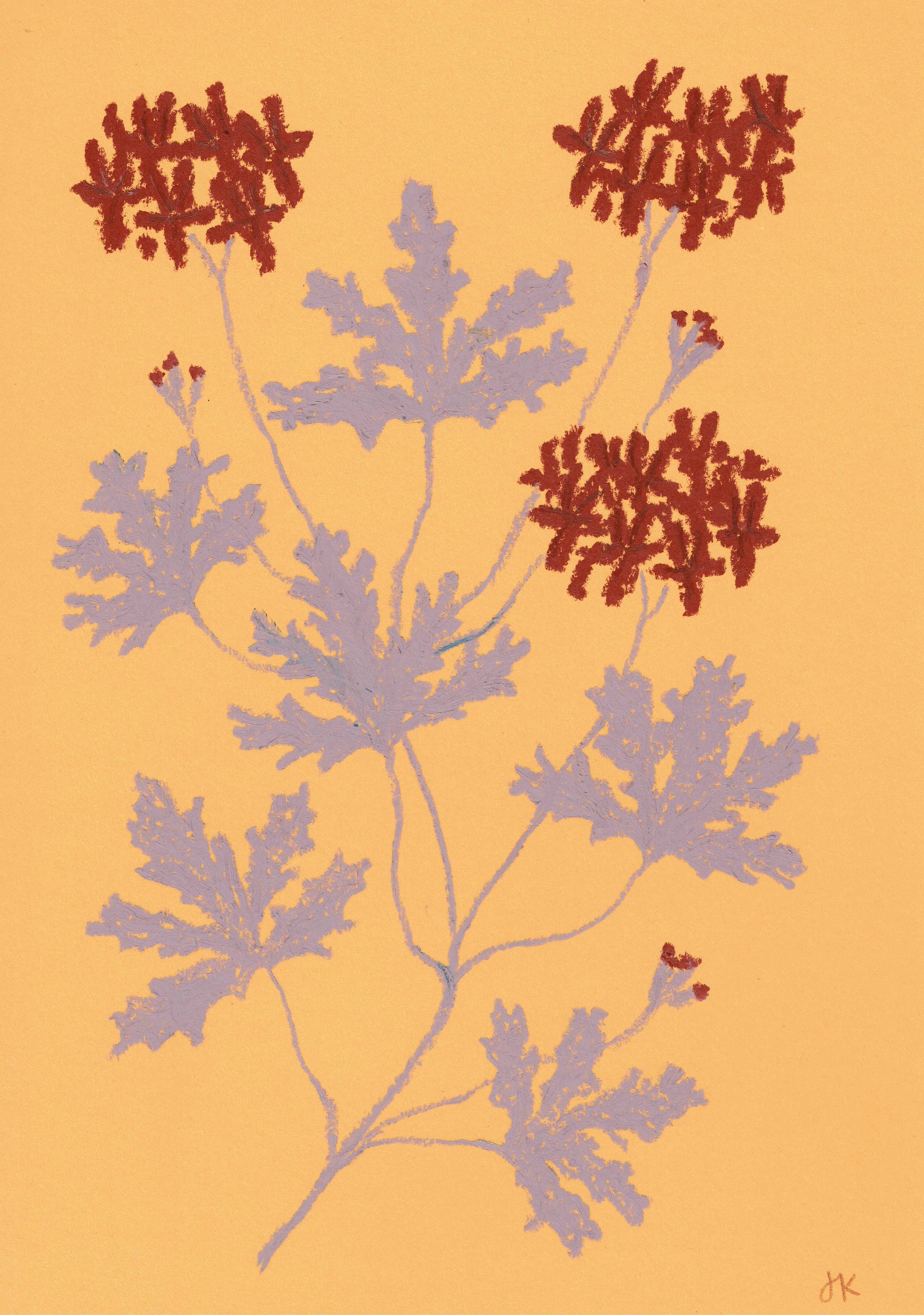 Jasmyn Kopcsandy is an American artist living in London. Flowers are her favourite muse: the natural forms and dreamlike compositions of floristry, botanical illustration, and herbaria all greatly influence her paintings. New work is often inspired by the changing of seasons, the shifting colours and shapes in nature. Jasmyn uses watercolours, gouache and coloured pencil to create ethereal paintings that play with colour, light and shadow.