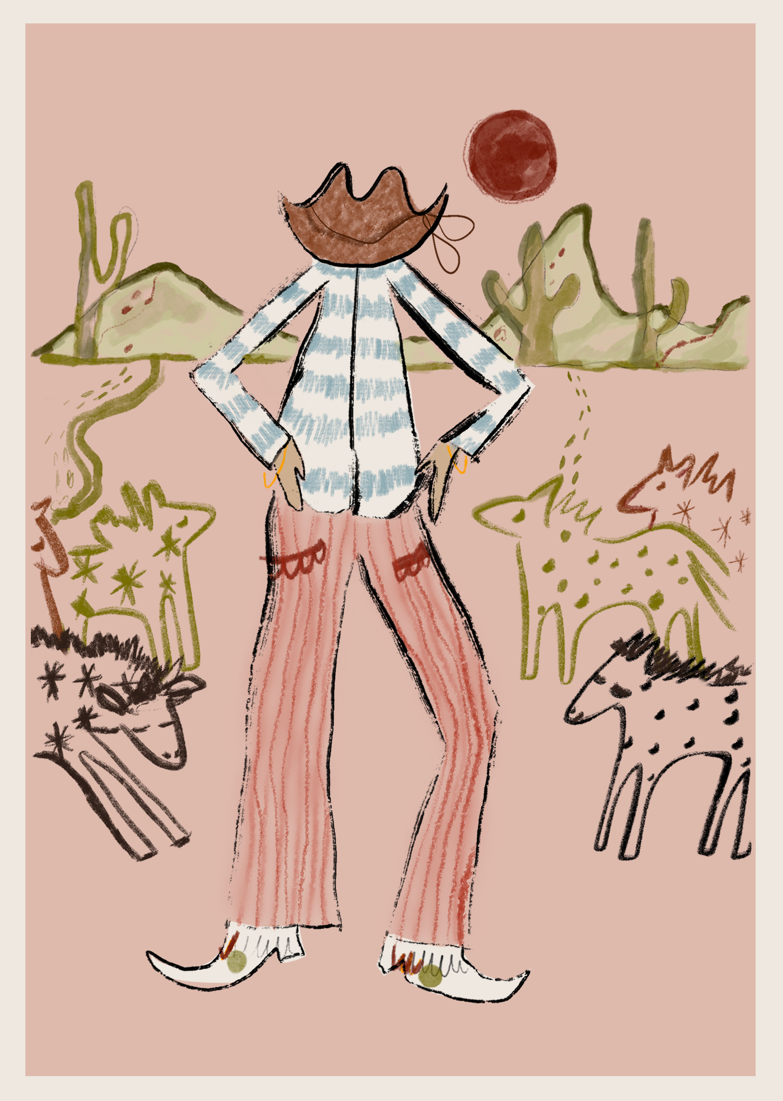 She began illustrating cowboys and playful Western scenes one evening at home in West Cork, Ireland, and before long there was a growing interest to purchase the images as prints.