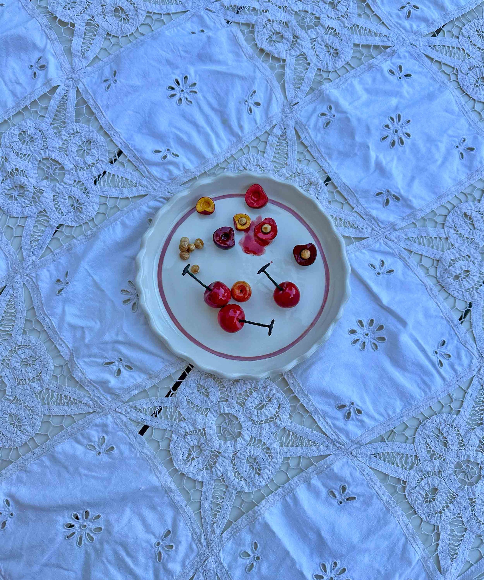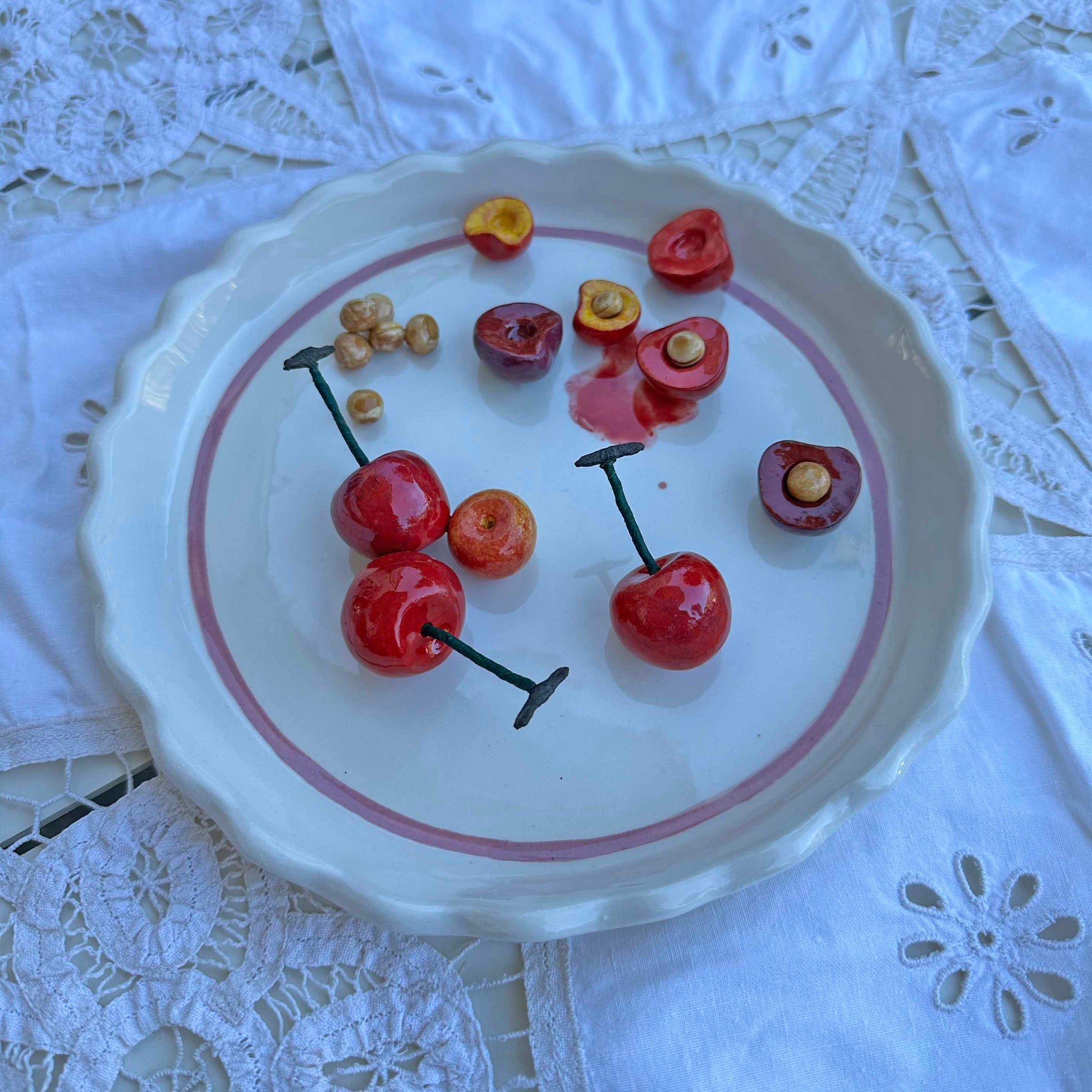 Ceramic cherry plate with pips
