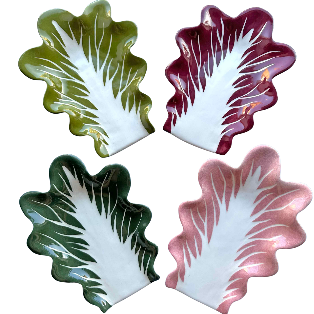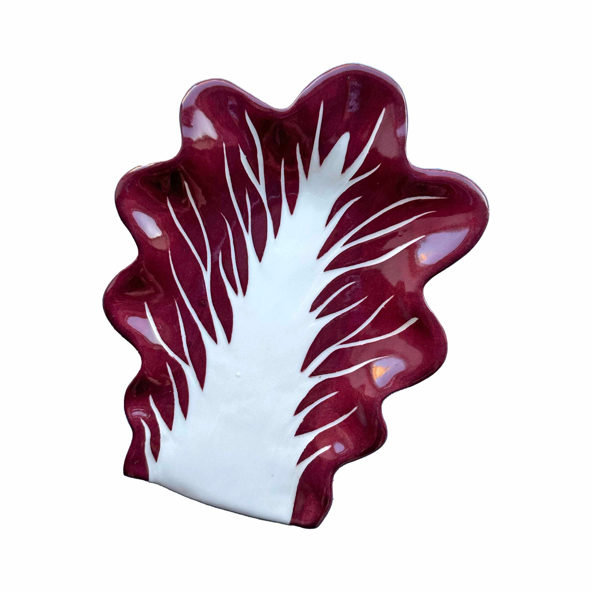 Venetian radicchio leaf spoon rest hand-made using porcelain. Each spoon rest radicchio leaf is carved by hand, making every piece unique