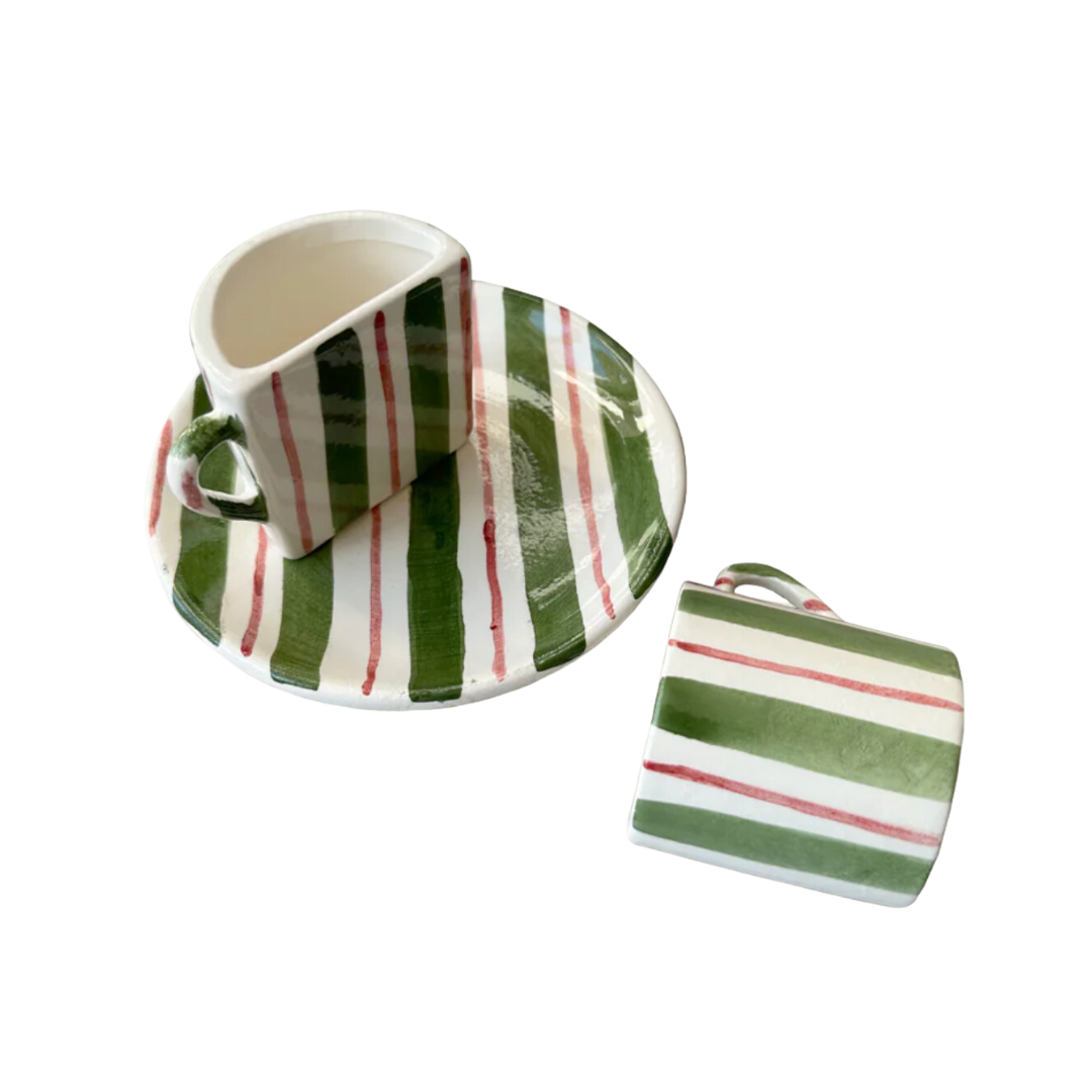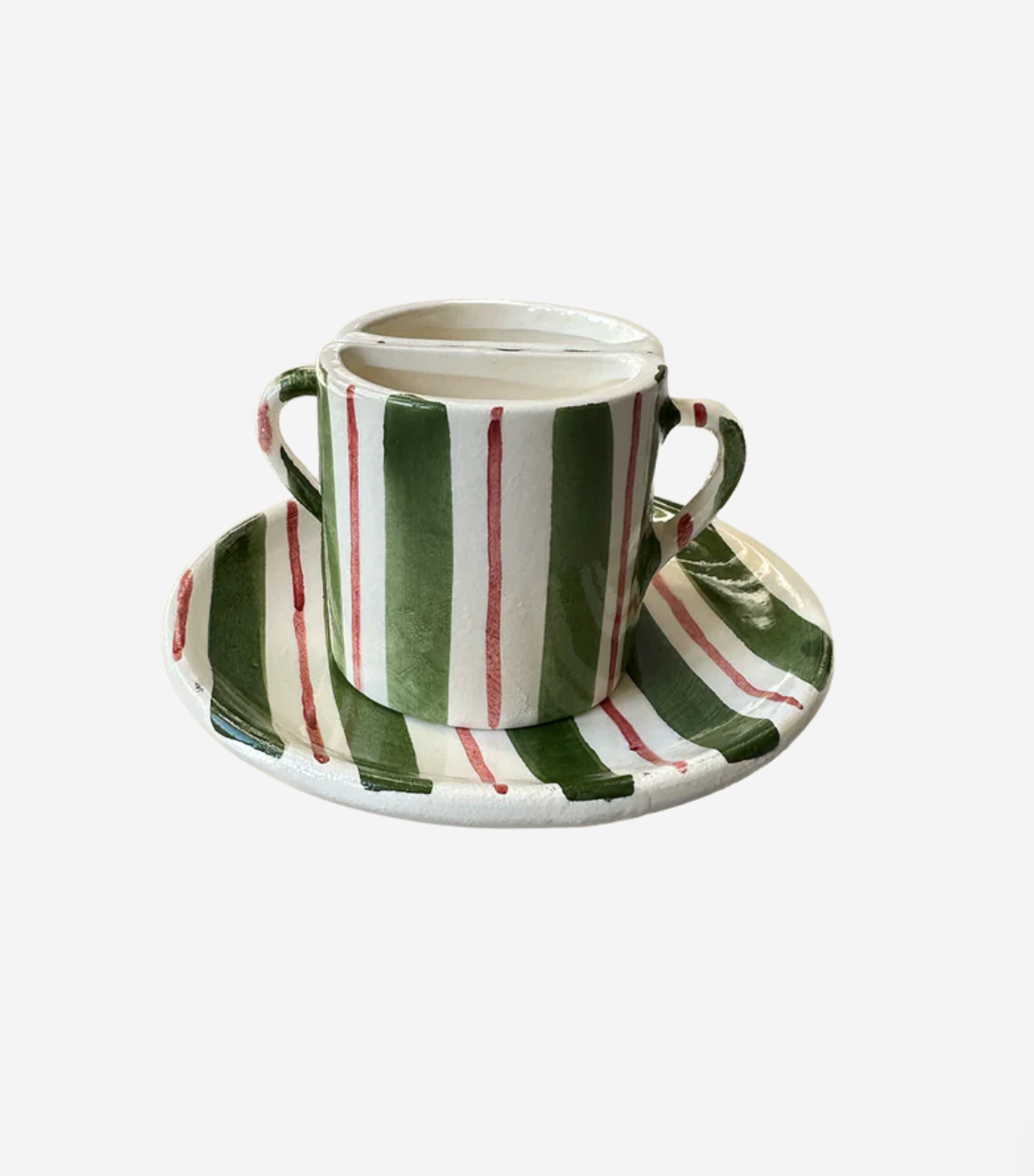 Musae Studio, Tête a Tête cup set - Green and burgundy stripes