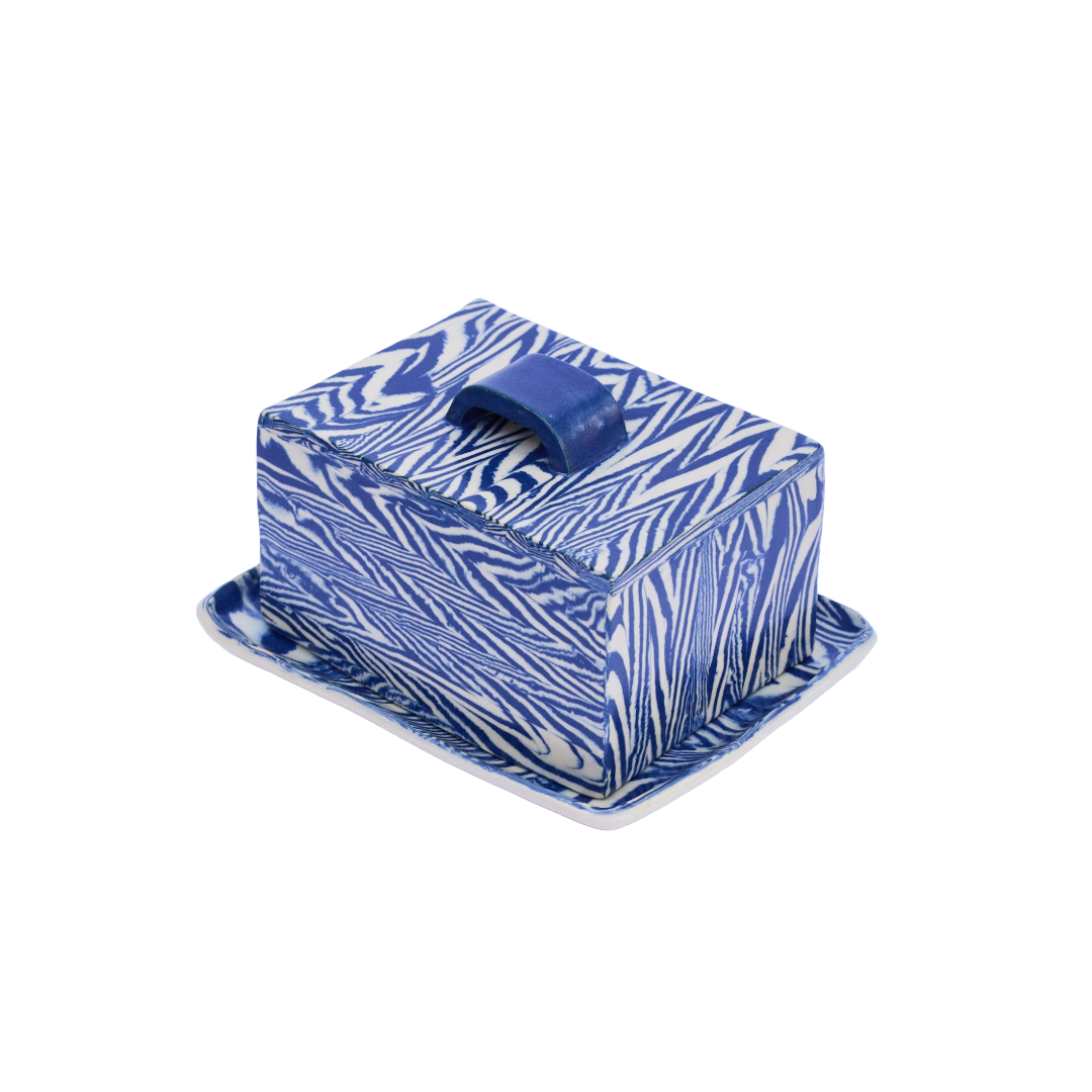 Plop Pottery, Cobalt Herringbone Butter Dish