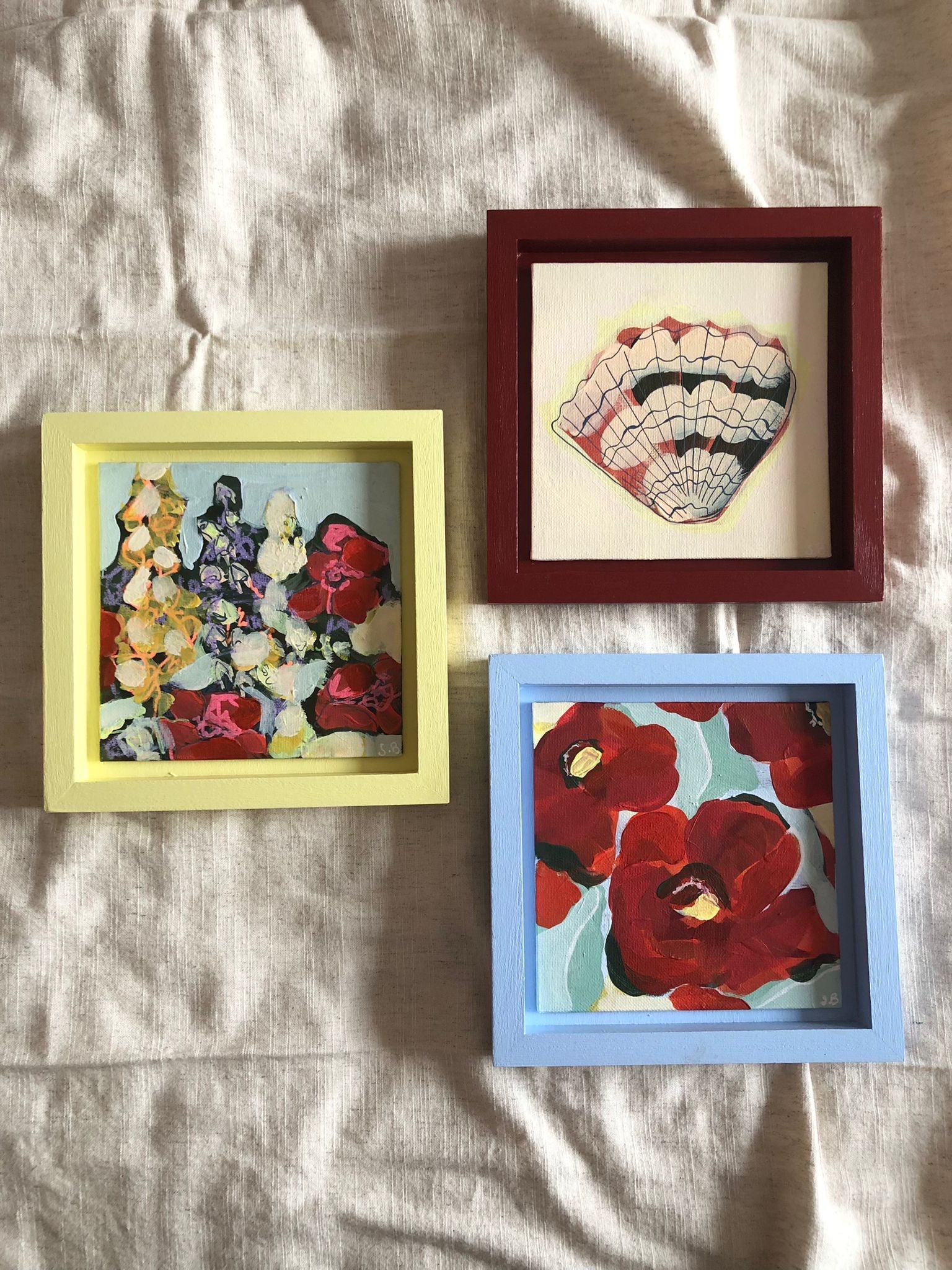 Original acrylic painting on canvas board, set in a hand-painted wooden tray frame8 x 8 inches / 20.3x20.3cm (painting is 6 x 6 inches / 15.2x15.2cm)