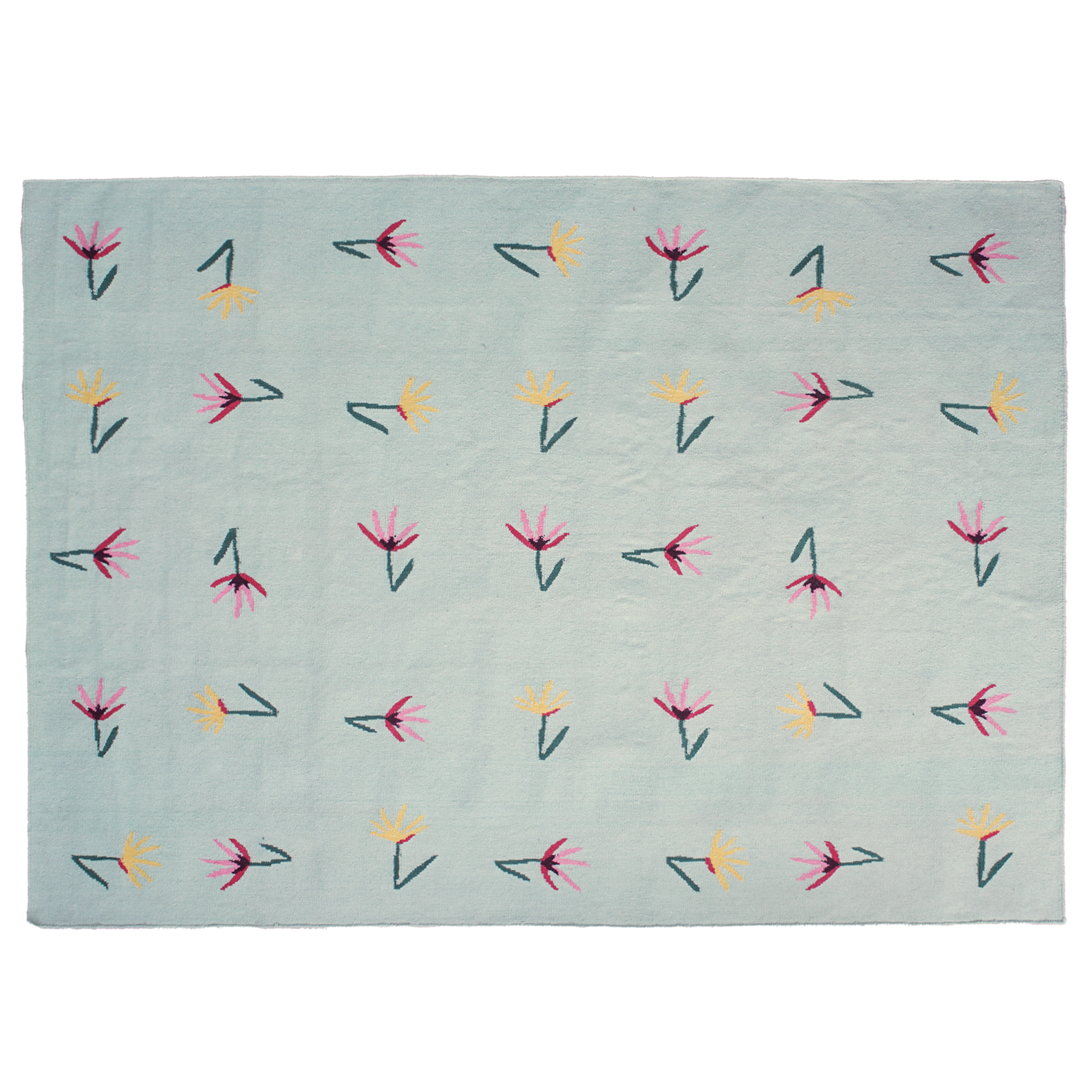 Sparrow and Grass, 'Wild Flowers Rug in Blue'