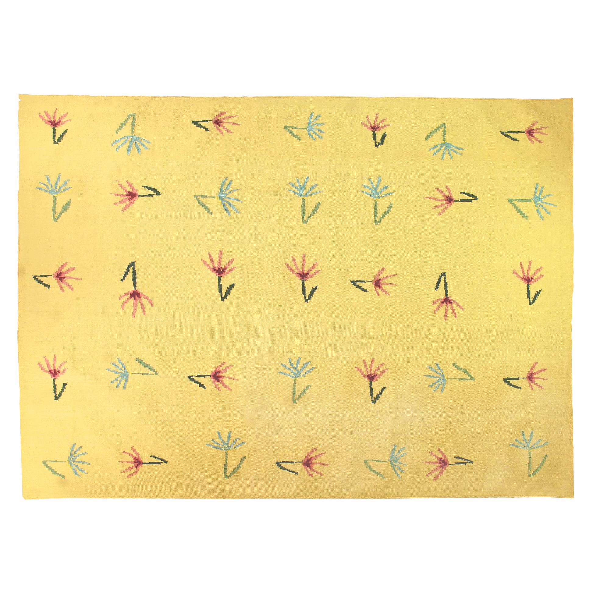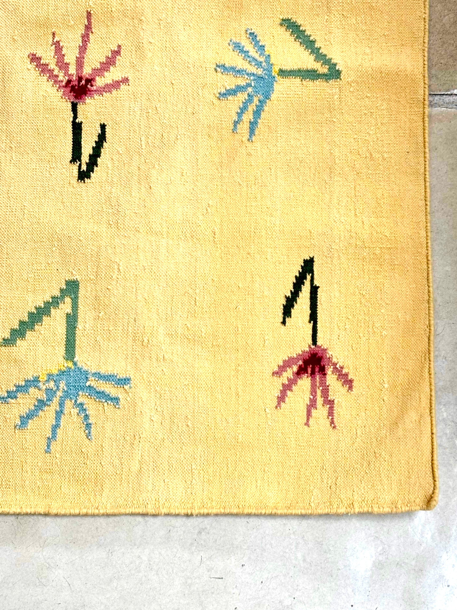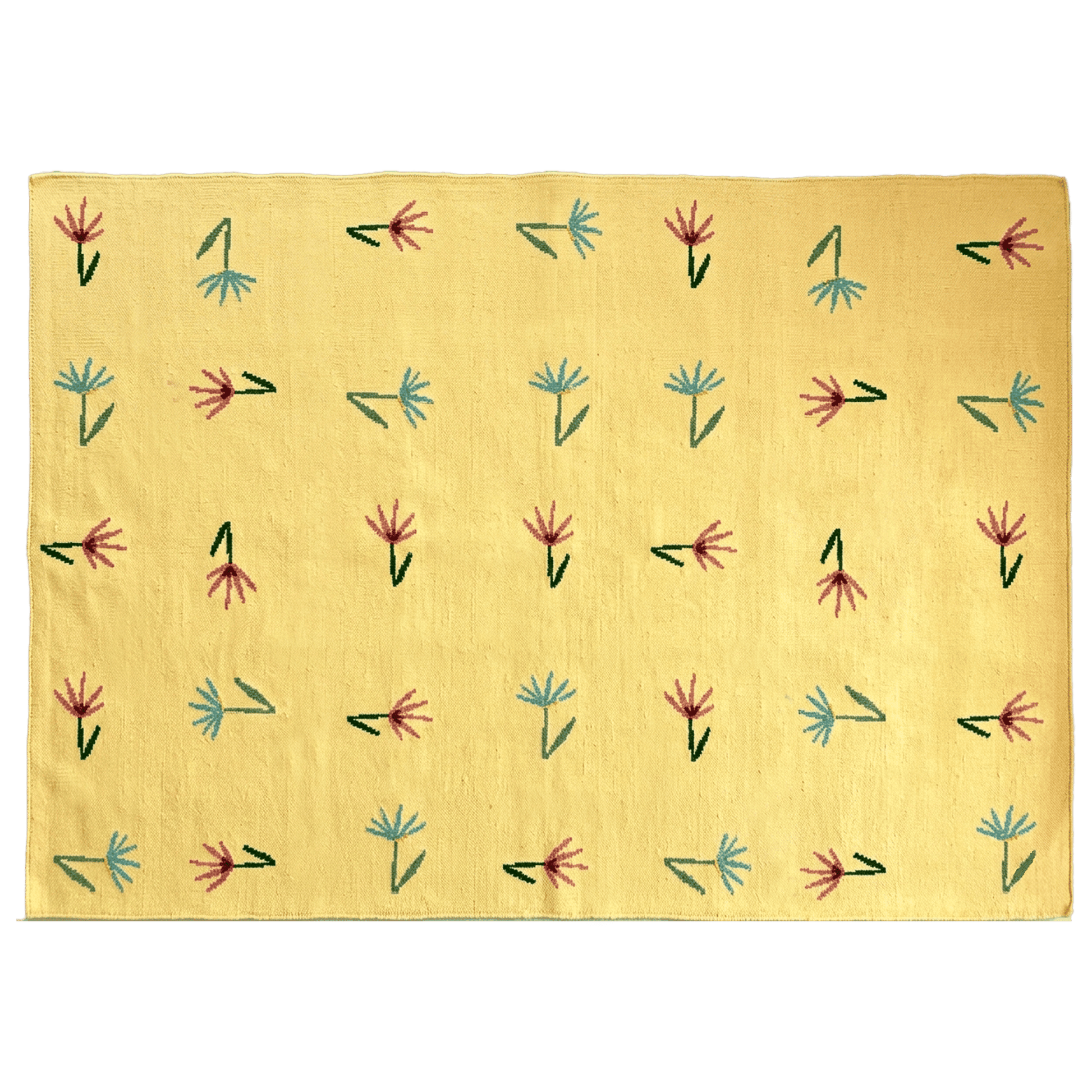 Sparrow and Grass, 'Wild Flowers Rug in Yellow'