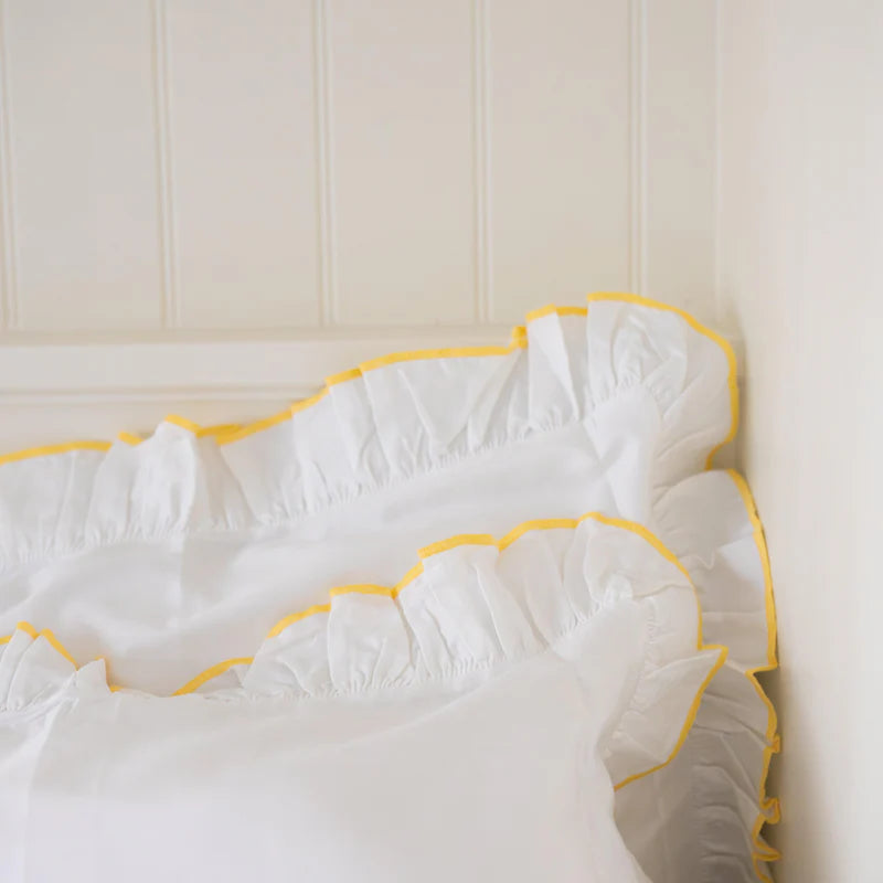 Introducing our enchanting Provence-inspired pillowcase with frill and a dusty pink trim - where dreams meet French elegance. Immerse yourself in a world of whimsical charm and romantic allure as you indulge in these rich, buttery soft cotton sateen pillow cases.