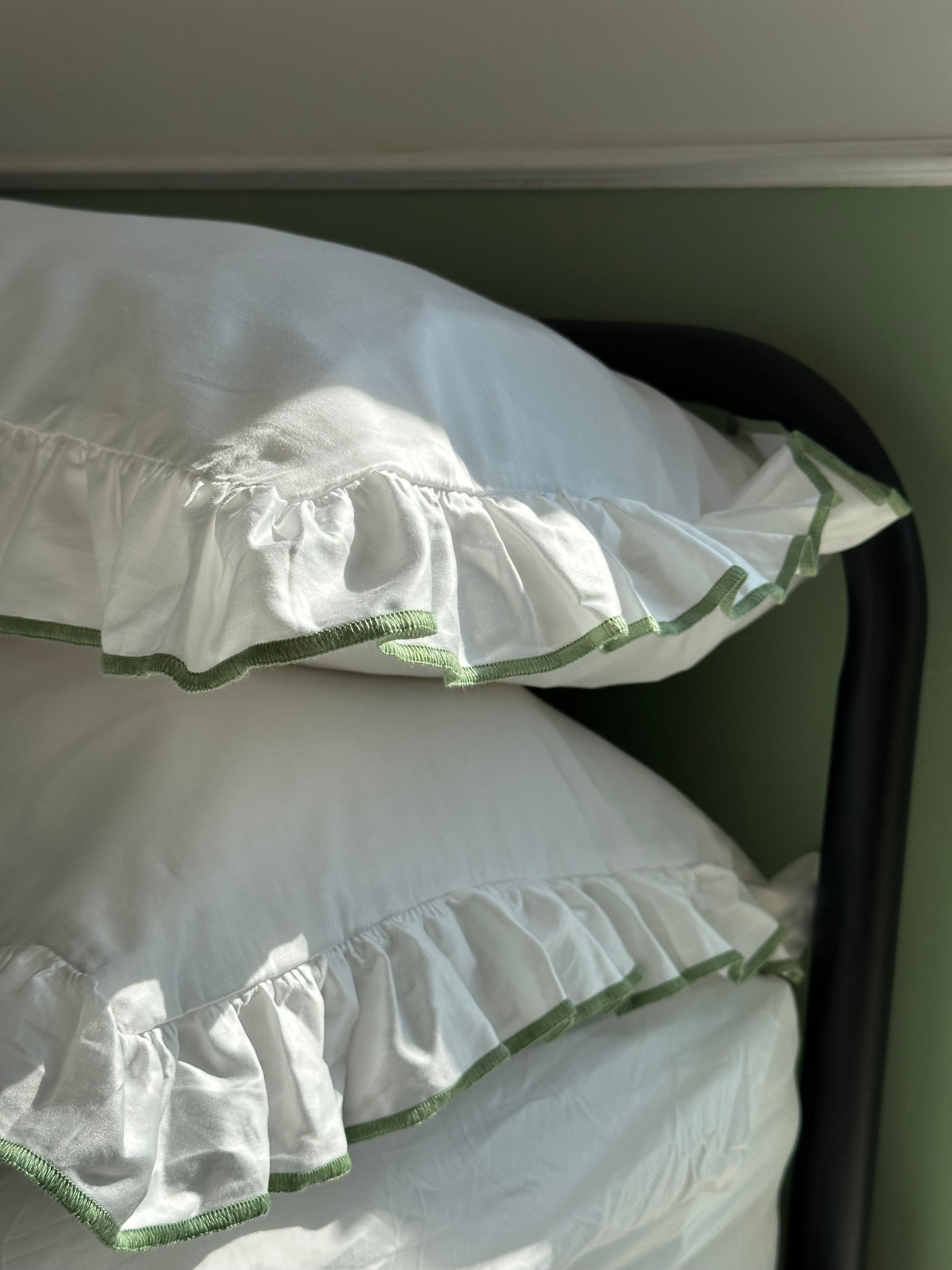 Introducing our enchanting Provence-inspired pillowcase with frill and a dusty pink trim - where dreams meet French elegance. Immerse yourself in a world of whimsical charm and romantic allure as you indulge in these rich, buttery soft cotton sateen pillow cases.