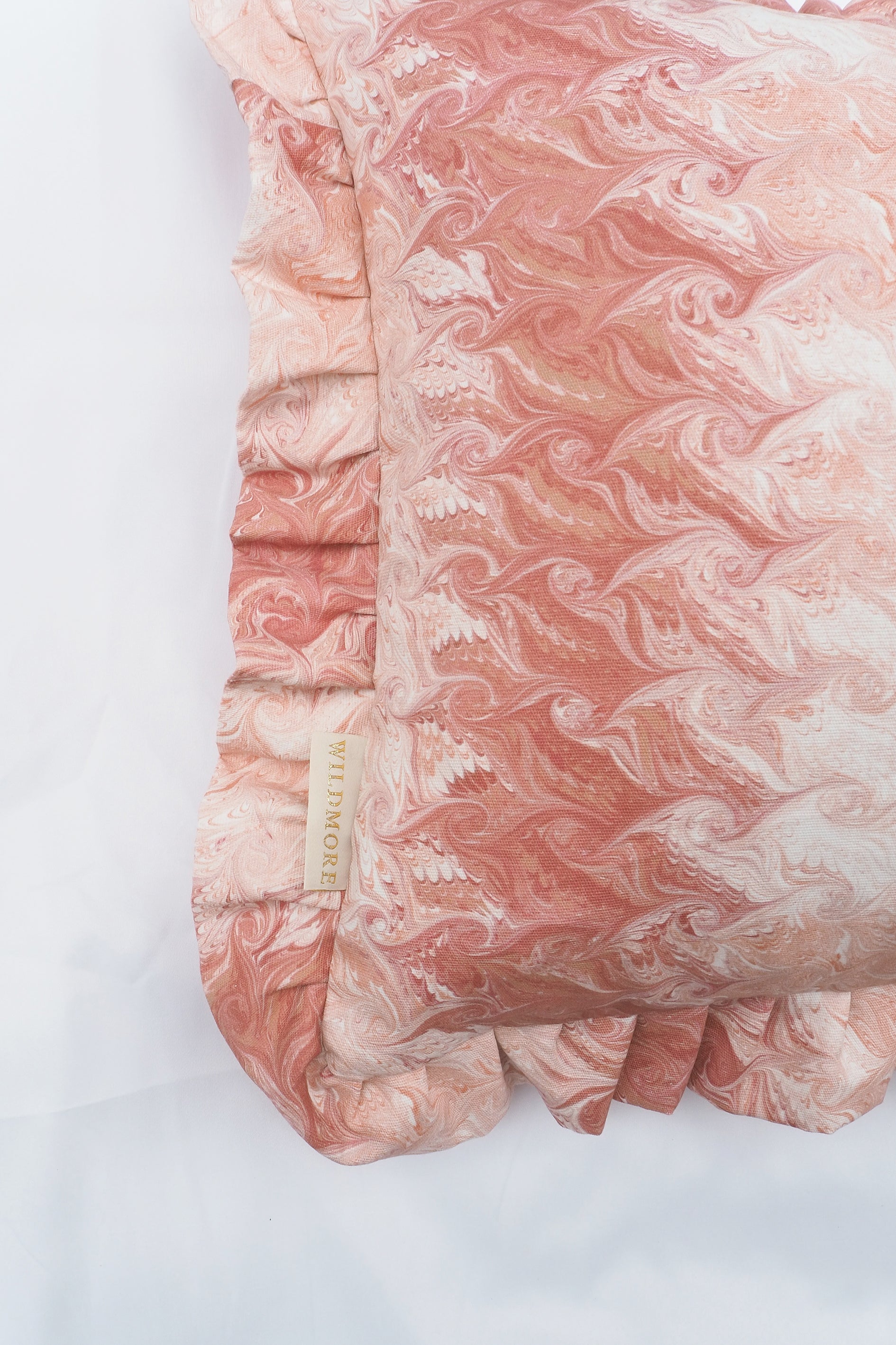 Wildmore have the pleasure of introducing the exquisite Azure Main cushion in collaboration with local artisan, The Whimsical Marbler. This stunning take on a stripe began life in the hands of this wonderful local craftswoman. The Whimsical Marbler helped create this timeless design using the ancient art of water marbling. The pattern is swirled through pigments on the surface of a marbling solution to create the wonderous Azure Main. The fluidity of the craft adds a delightful level of detail, ideal for the biggest of rooms or the smallest of WCs.