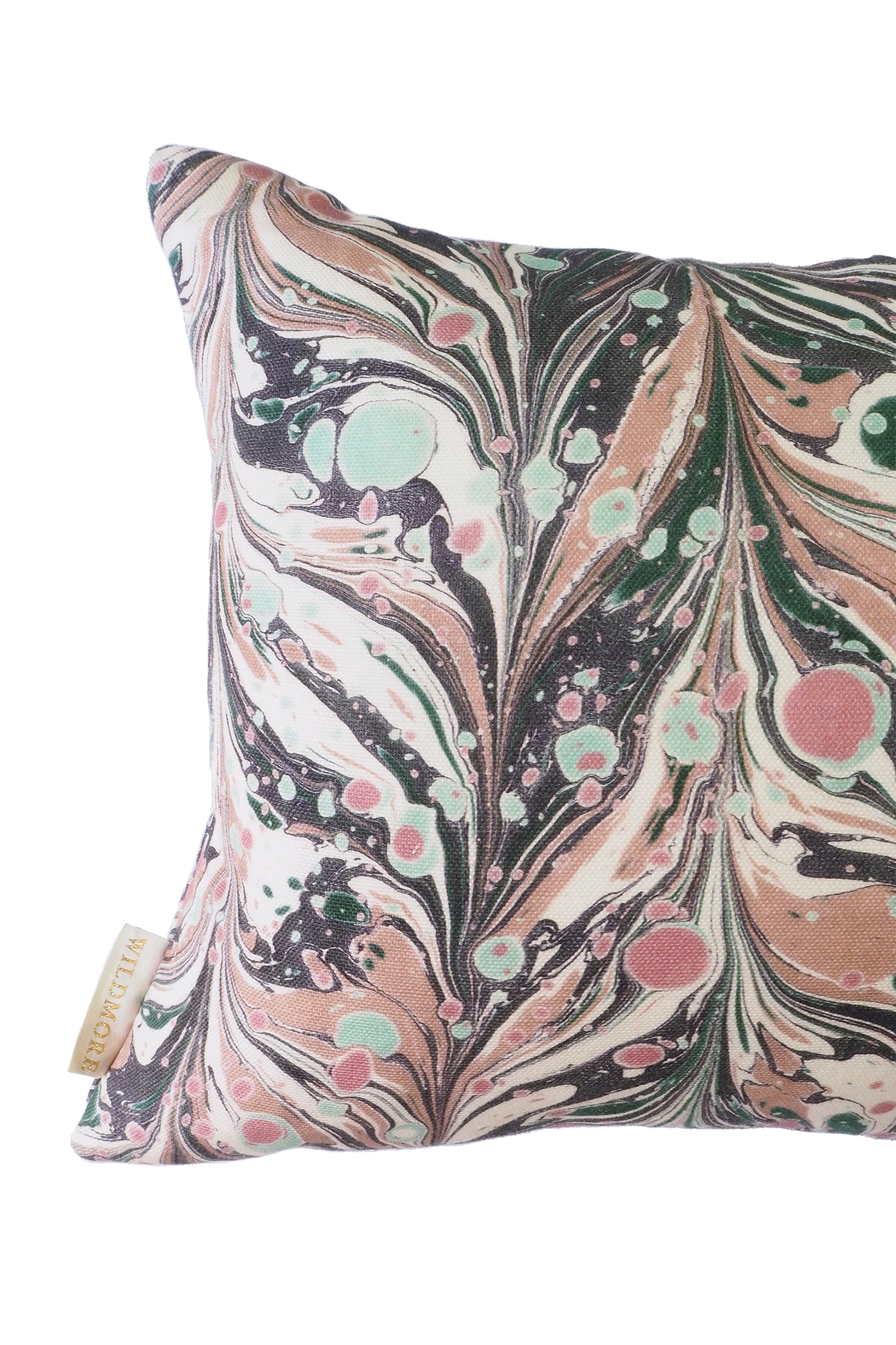 This bold Obliquus design was first created using the ancient art of water marbling by the talented local artisan, The Whimsical Marbler. This Obliquus bolster has then been printed in the UK and hand made in Wildmore's studio in Lincolnshire. Wonderfully crafted from cotton linen in the Wildmore studio, this timeless cushion will feel at home in any décor scheme. This bolster cushion is the perfect size for your favourite chair or for scattering among your collection of cushions.